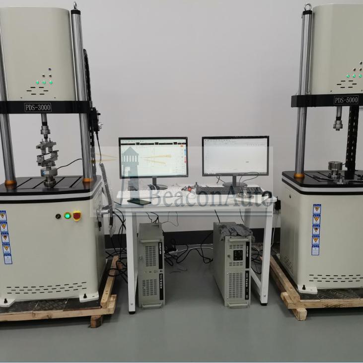 方案描述: 運動醫(yī)學植入物疲勞測試系統(tǒng)參考標準: GB/T13810-2007外科植入物用鈦及鈦合金加工材 YY/T 1832-2022 外科植入物 運動醫(yī)學植入物 縫線拉伸試驗方法 微機伺服動靜態(tài)疲勞測試系統(tǒng)主要組成部分: 1.橫梁電動調整裝置, 2.進口伺服作動缸、日本松下驅動裝置; 3.數(shù)據(jù)采集控制系統(tǒng):動靜態(tài)伺服控制器和中文軟件系統(tǒng) 4.美國進口動態(tài)專用力傳感器 獨特的空間調整機構,傳動部件內置于橫梁內部,雙絲杠調整,同步機構傳動,保證橫梁升降運轉平穩(wěn),調整速度任意可調,接近試件時可放慢速度,調整就位后,機械增力機構鎖緊,方便省力。 1.2伺服作動缸 作動缸置于工作臺平面上。 zui大試驗力:5000N。 作動器有效行程:+/-50mm(總行程100mm); 作動器自帶日本(多沐川)高精度位移傳感器, 作動器振幅極限位置設計緩沖區(qū),避免運行失控產生損傷; 系統(tǒng)采用消隙裝置,力值自動定心,減小側向力,降低高頻拉壓試驗時的沖擊,改善試驗波形 1.3傳感器。 負荷傳感器1:3000N,過載能力110%。置于作動活塞前端,帶自鎖緊螺母。 負荷傳感器2: 500N,用于縫線等小力值試件測試 出廠前對傳感器標定完畢。 1.4試驗附具。 1縫線靜態(tài)拉伸夾具 1套 (纏繞式夾具,按標準) 2縫線拉伸疲勞測試夾具 1套 (φ12雙柱夾具,按標準) 3 帶袢鈦板拉伸夾具 1套 (φ12雙柱夾具,按標準) 4 實驗用水浴裝置 1套 (含37度溫控 ) 可根據(jù)用戶要求設計制作。 提供接口圖紙。 NO.3數(shù)據(jù)采集控制系統(tǒng) 伺服控制部分由全數(shù)字伺服控制器、工控計算機和軟件以及附件等組成。 單通道全數(shù)字伺服控制器(含軟件系統(tǒng))做為系統(tǒng)控制器。D8008控制系統(tǒng)作為自主研發(fā)先進的試驗系統(tǒng)用于本設備,可全面確保系統(tǒng)的先進性與可靠性。 3.1控制器主要配置組成: 可升級的D8008控制器主機站,(最多可升級到6個通道) 帶兩個傳感器的信號調理單元(力、位移) 信號發(fā)生器單元 計算機工作站(主流品牌計算機,根據(jù)D8008控制器要求配置) 3.2 D8008主要技術指標。 控制單元:以任意采集信號進行全數(shù)字PIDF控制。閉環(huán)控制頻率:5kHz; 頻率范圍:0.01-1000Hz,頻率分辨率:0.001Hz; 控制波形:正弦波、三角波、方波、半正弦波、半三角波、半方波、斜波等; 控制方式:力、位移閉環(huán)控制,并可實現(xiàn)任意控制模式的平滑無擾切換; 系統(tǒng)具有傳感器標定、清零等功能; 通過GPIB卡與計算機實現(xiàn)高速數(shù)據(jù)采集,數(shù)據(jù)傳輸最高速度8M/s; 3.3控制器主要功能介紹 D8008控制器配套有多種應用軟件、套件可供選擇。這些套件可滿足各類試驗需求。而且這些軟件的設計具有一致性,用戶可在很短的時間內掌握各種套件的使用; 控制器中的標定向導系統(tǒng)指導用戶進行自動標定或更為詳細地進行手工標定; 控制器采取了在動態(tài)試驗控制與數(shù)據(jù)采集方面最先進的提高質量和精度的技術。如:自適應控制、自動回路波形設置及振幅控制等,充分保證試驗與數(shù)據(jù)的準確度; D8008控制器快速靈活的軟件系統(tǒng)可滿足廣泛的試驗要求。應用軟件采用zui少的界面窗口實現(xiàn)所需全部工作的顯示。所有數(shù)據(jù)、圖形及數(shù)字等都可以與其他的Win程序進行交換,用戶可創(chuàng)建個性化的報表; 控制器的高分辨率反饋取樣及信號調節(jié)技術將數(shù)字式伺服控制器的數(shù)據(jù)質量提高到一個新的層次。全程不分檔測量技術,保證了在整個傳感器量程范圍內都有精確的可重復的測量數(shù)據(jù); D8008控制器易于擴展,方便用戶將來再次投入升級。并可隨著用戶試驗需求的不斷增長,增添新的控制通道,以保護用戶的投資。 試驗軟件提供非常容易的方法來建立和運行簡單的試驗。自動生成試驗步驟,實現(xiàn)試驗過程的自動化控制;多種補償技術能優(yōu)化控制,甚至用于具有挑戰(zhàn)性的試驗和復雜的試驗。 D8008控制器控制通道具有多種控制模式,并可實現(xiàn)控制模式的平滑無擾切換;同時具有無波動啟動、自動調零、保存和恢復PID設置、保存和恢復測試文件、自動進行數(shù)據(jù)采集、試驗過程中保護試樣等功能; 3.4軟件系統(tǒng): 3 . 5 數(shù)據(jù)處理: 滿足測試次數(shù)10^7預設判斷 滿足峰谷值R=0.1 的要求 多組測試自動生成F-N曲線 試驗報告 試驗報告應包含以下內容∶ 試驗樣品的產品信息,包括產品名稱、制造商、規(guī)格型號、批號等; 對于靜態(tài)拉伸試驗∶加載速度、試樣標距、斷裂強力; c) 對于動態(tài)拉伸試驗∶最大和最小載荷、加載頻率、循環(huán)次數(shù)、打結方式、標距、伸長率、每個試樣試驗終止的原因以及在試驗結束時的狀態(tài)。 3.6 計算機、打印機。 21" LCD 顯示器。 Pentium cpu 2.2GHz,8G內存。 1T以上硬盤,DVD-RW,101鍵盤。 Windows 10操作系統(tǒng)。 HP打印機。 三、運動醫(yī)學植入物疲勞測試系統(tǒng) 主要技術指標 zui大試驗力:±3000N; 試驗力示值精度:2%-100.%FS范圍內,各點均為小于±1.0%; 試驗力動態(tài)示值波動度:0.5%FS; 作動器zui大位移:±50mm;示值精度±0.5%FS; 主要試驗波形:正弦波、方波、三角波、斜波等。 試驗頻率:0.01-20Hz; 標簽:PDS3000運動醫(yī)學植入物疲勞測試系統(tǒng)