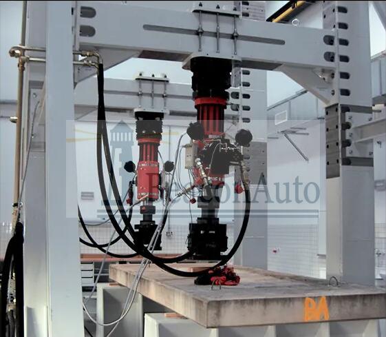 BaT2510-4 土木工程靜態(tài)力學(xué)加載試驗(yàn)系統(tǒng) 土木工程靜態(tài)力學(xué)加載試驗(yàn)系統(tǒng)產(chǎn)品簡介: 土木工程靜態(tài)力學(xué)加載試驗(yàn)系統(tǒng),適用于主要應(yīng)用于橋梁、建筑、學(xué)校土木工程研究等力學(xué)結(jié)構(gòu)靜態(tài)性能的試驗(yàn)研究。主要用途包括: 完成梁、墻、柱、框架、節(jié)點(diǎn)、以及樓板等結(jié)構(gòu)件的低周反復(fù)加載,保載、卸載等常規(guī)試驗(yàn)。 該系列產(chǎn)品具有輸出力范圍廣,控制精度高,使用方便,可靠性高等特點(diǎn)。該系統(tǒng)在研制、開發(fā)過程中吸取國際先進(jìn)電液伺服控制技術(shù),結(jié)合國內(nèi)用戶的實(shí)際使用狀況設(shè)計(jì)而成。伺服作動(dòng)器、伺服動(dòng)力液壓站、力加載框架等關(guān)鍵部件為我公司設(shè)計(jì)制造,伺服閥、傳感器、密封件等關(guān)鍵外購件均選用國際、國內(nèi)同類產(chǎn)品的著名品牌產(chǎn)品,大大提高了系統(tǒng)的穩(wěn)定性和可靠性,試驗(yàn)機(jī)的整體性能與國際先進(jìn)產(chǎn)品技術(shù)水平相當(dāng)。 土木工程靜態(tài)力學(xué)加載試驗(yàn)系統(tǒng)既能低周疲勞試驗(yàn)、程序控制疲勞試驗(yàn),也能進(jìn)行靜態(tài)的恒速率、恒應(yīng)變、恒應(yīng)力控制下的試驗(yàn)和各種常規(guī)的力學(xué)性能試驗(yàn),還可進(jìn)行斷裂力學(xué)試驗(yàn),自然力量模擬試驗(yàn),如地震、風(fēng)浪等。根據(jù)需要也可以進(jìn)行部分的工況模擬等,因此有著其它任何種類的試驗(yàn)機(jī)所不能比擬的優(yōu)勢; 在土木工程方面我們有針對結(jié)構(gòu)試驗(yàn)而設(shè)計(jì)的大噸位作動(dòng)器,作動(dòng)器形式有單出桿和雙出桿兩種結(jié)構(gòu)形式,輸出力范圍從100kN到10000kN,行程可根據(jù)用戶實(shí)際需求而定,作動(dòng)器標(biāo)準(zhǔn)行程200--500mm(±100mm/±250mm),根據(jù)結(jié)構(gòu)試驗(yàn)要求可配置不同規(guī)格的作動(dòng)器,廣泛應(yīng)用于新型混凝土材料、復(fù)合結(jié)構(gòu)件材料的靜態(tài)力學(xué)性能試驗(yàn),包括拉伸、壓縮、三點(diǎn)四點(diǎn)彎曲試驗(yàn)、;也可以進(jìn)行結(jié)構(gòu)件的疲勞試驗(yàn),如長支撐梁,公路橋等。從簡單的靜態(tài)結(jié)構(gòu)試驗(yàn)到原尺寸大型構(gòu)件地震模擬試驗(yàn),從單通道試驗(yàn)到大型土木工程試驗(yàn)室配置,從支柱彎曲到三軸橡膠橋梁軸承試驗(yàn),該系列設(shè)備均可為你提供極大的幫助,可以助你驗(yàn)證新概念、開發(fā)更新、更有效、更經(jīng)濟(jì)的土木材料和結(jié)構(gòu) 土木工程靜態(tài)力學(xué)加載試驗(yàn)系統(tǒng)方案描述: 土木工程靜態(tài)力學(xué)加載試驗(yàn)系統(tǒng)主要組成部分有: 1.自平衡門式反力框架、1套 2.伺服作動(dòng)器:3000KN/1500雙出桿作動(dòng)器各1只; 3.伺服動(dòng)力液壓站;大流量遠(yuǎn)程控制伺服液壓系統(tǒng),包括分油閥塊和管路。 4.?dāng)?shù)據(jù)采集控制系統(tǒng):雙通道靜載控制器,包括擴(kuò)展采集和軟件 5.各路力傳感器和位移傳感器 6. 根據(jù)需要配置各種球鉸支座 NO.1自平衡門式反力框架 土木工程靜態(tài)力學(xué)加載試驗(yàn)系統(tǒng)功能及基本參數(shù): 1、為結(jié)構(gòu)試驗(yàn)提供多功能綜合反力框架; 2、多功能綜合反力架采用自平衡概念設(shè)計(jì); 3、根據(jù)不同的試驗(yàn),反力架橫梁液壓升降自由調(diào)節(jié); 4、為加載設(shè)備、結(jié)構(gòu)試件預(yù)留相應(yīng)的安裝連接; 5、主梁在可調(diào)節(jié)加載范圍內(nèi)豎向承載力設(shè)計(jì)值為4000kN; 6、反力架可以抵抗2000kN的雙向水平荷載,可抵抗偏壓柱試驗(yàn)、復(fù)雜節(jié)點(diǎn)加載試驗(yàn)時(shí)產(chǎn)生的水平反力。 7、反力架采用Q345-B結(jié)構(gòu)鋼; 8、上橫梁配有獨(dú)立的升降系統(tǒng),上橫梁升降操作便捷,安全。 反力架材料選用Q345-B鋼板,試驗(yàn)空間大,且高度空間可調(diào)整,側(cè)向也需要進(jìn)行施加載荷,這就要求整體框架要有足夠的剛度,底座、立柱、橫梁采用等強(qiáng)度廂型梁焊接結(jié)構(gòu),立柱帶有斜撐,以抵抗試件的側(cè)向加載力;立柱與底座間緊密接觸,這樣可以在試驗(yàn)過程中盡量減少立柱的伸長對試驗(yàn)結(jié)果的影響。整體框架構(gòu)造及其每個(gè)部件都進(jìn)行有限元分析,并根據(jù)分析結(jié)果反復(fù)進(jìn)行結(jié)構(gòu)的優(yōu)化設(shè)計(jì),以達(dá)到最滿意的效果。 橫梁通過安裝在兩立柱上的螺栓調(diào)整其垂向位置,操作簡單,調(diào)整到試驗(yàn)位置后,通過螺栓進(jìn)行定位鎖緊,消除間隙。為了保證橫梁升降的穩(wěn)定性和安全性,對升降橫梁用加強(qiáng)螺栓定位。 橫梁配有獨(dú)立的升降機(jī)構(gòu),兩側(cè)固定有升降用舉升油缸,通過控制舉升油缸的升降來完成對試驗(yàn)空間的無級調(diào)整。 NO.2伺服作動(dòng)器 伺服直線作動(dòng)器是加載系統(tǒng)的執(zhí)行部件,系統(tǒng)通過作動(dòng)器對被測試件施加試驗(yàn)力。伺服直線作動(dòng)器由作動(dòng)器本體、伺服閥塊組、球鉸關(guān)節(jié)支座、流體連接件等部分組成。作動(dòng)器內(nèi)置磁致伸縮位移傳感器用于測量試驗(yàn)位移,負(fù)荷傳感器安