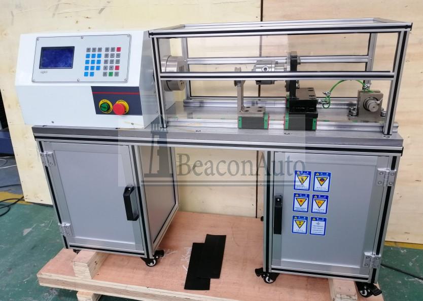 EZ-5金屬線材扭轉(zhuǎn)試驗(yàn)機(jī) 金屬線材扭轉(zhuǎn)試驗(yàn)機(jī)主要用途 金屬線材扭轉(zhuǎn)試驗(yàn)機(jī)適用于測(cè)定直徑(或特征尺寸)為3-5.0mm 的金屬線材在單向或雙向扭轉(zhuǎn)中承受塑性變形的能力及顯示線材表面和內(nèi)部的缺陷。 金屬線材扭轉(zhuǎn)試驗(yàn)機(jī)原理: 單向扭轉(zhuǎn):試樣繞自身軸線向一個(gè)方向均勻旋轉(zhuǎn)360度作為一次扭轉(zhuǎn)至規(guī)定次數(shù)或試樣斷裂。 雙向扭轉(zhuǎn):試樣繞自身軸線向一個(gè)方向均勻旋轉(zhuǎn)360度作為一次扭轉(zhuǎn)至規(guī)定次數(shù)后,向相反方向旋轉(zhuǎn)相同次數(shù)或試樣斷裂。 金屬線材扭轉(zhuǎn)試驗(yàn)機(jī)適用標(biāo)準(zhǔn): 金屬線材扭轉(zhuǎn)試驗(yàn)機(jī)適用于中華人民共和國標(biāo)準(zhǔn)GB/T 239.1-2012《金屬材料 線材 第一部分 單向扭轉(zhuǎn)試驗(yàn)方法》、GB/T 239.2-2012《金屬材料 線材 第二部分 雙向扭轉(zhuǎn)試驗(yàn)方法》,也適用于國際標(biāo)準(zhǔn)ISO 7800:2003《金屬線材單向扭轉(zhuǎn)試驗(yàn)方法》和ISO 9649:1990《金屬線材雙向扭轉(zhuǎn)試驗(yàn)方法》。 金屬線材扭轉(zhuǎn)試驗(yàn)機(jī)應(yīng)用領(lǐng)域: 該機(jī)主要用于大專院校、科研部門、工礦企業(yè)的力學(xué)實(shí)驗(yàn)室的金屬線材的力學(xué)性能分析,也廣泛用于生產(chǎn)單位的在線檢測(cè);主要行業(yè)有鋼廠高速線、預(yù)應(yīng)力鋼絲廠、質(zhì)量監(jiān)督、科研院所、公路交通、建筑行業(yè)、鋼絲繩、電線電纜、電氣化鐵道用銅及銅合金導(dǎo)線、銅接觸線等生產(chǎn)和使用部門。 金屬線材扭轉(zhuǎn)試驗(yàn)機(jī)主機(jī)介紹: 1、機(jī)械結(jié)構(gòu): 該機(jī)型采用高性能交流電機(jī)作為動(dòng)力輸出,配以高精度減速電機(jī),從而使動(dòng)力能平穩(wěn)輸出。電機(jī)的驅(qū)動(dòng)采用高可靠、高穩(wěn)定變頻器,提高機(jī)器運(yùn)行的平順性,降低功耗。一側(cè)夾頭固定在電機(jī)輸出軸,另一側(cè)夾頭固定在可移動(dòng)軸承座。移動(dòng)座采用直線軸承,摩擦阻力小,保證了軸向移動(dòng)的平直度。軸向拉緊力采用砝碼施加,通過10:1的L型杠桿,將作用力施加在線材上。 2、控制單元: 控制系統(tǒng)選用進(jìn)口Atmel微處理器,結(jié)合成熟的控制方法,使得控制單元在控制精度和運(yùn)行穩(wěn)定性方面得到保證。顯示屏選用工業(yè)級(jí)液晶屏,具有壽命長、性能穩(wěn)定、視角寬等特點(diǎn)。計(jì)數(shù)器為抗干擾能力強(qiáng)的霍爾傳感器,該計(jì)數(shù)器同時(shí)還具有高靈敏度和較好的動(dòng)態(tài)性能,本機(jī)具有自動(dòng)判斷線材斷裂功能 金屬線材扭轉(zhuǎn)試驗(yàn)機(jī)技術(shù)指標(biāo): 型號(hào) | EZ-5 | 工作方式 | 自動(dòng)加載 | 顯示方式 | 液晶屏漢字菜單顯示 | 參數(shù): |